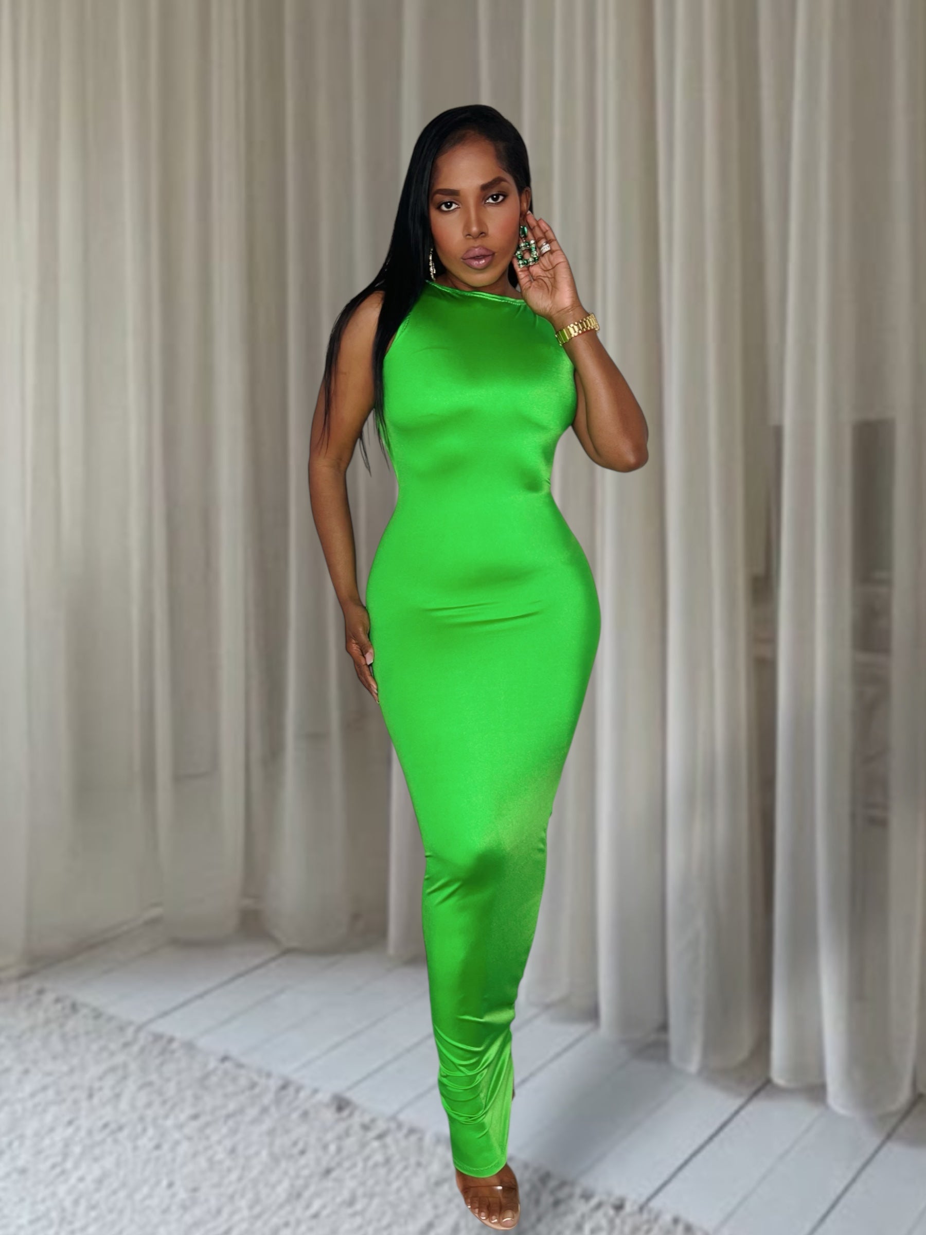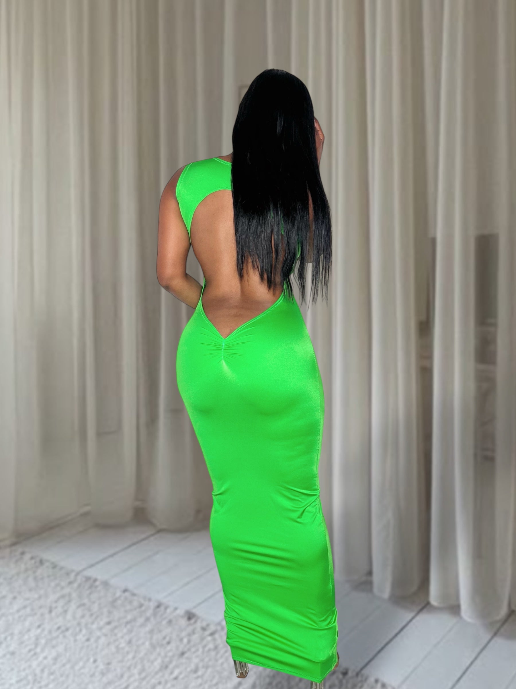 Constructed from high-quality nylon currant material, this dress offers impeccable fit and snatch for all body types. Beautifully keyhole back and pinch detail With remarkable stretch and softness, it guarantees a luxurious experience.