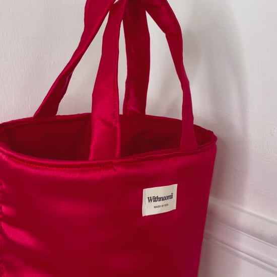 Crafted with care, this satin mini bag is a versatile accessory that adds elegance and functionality to any occasion, whether it be day or night. Elevate your style with this essential must-have featuring puff handles.