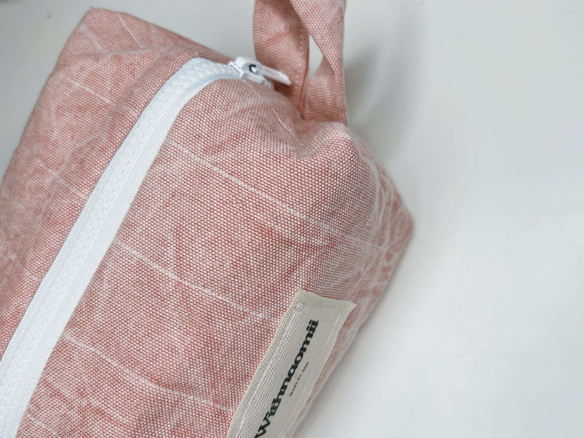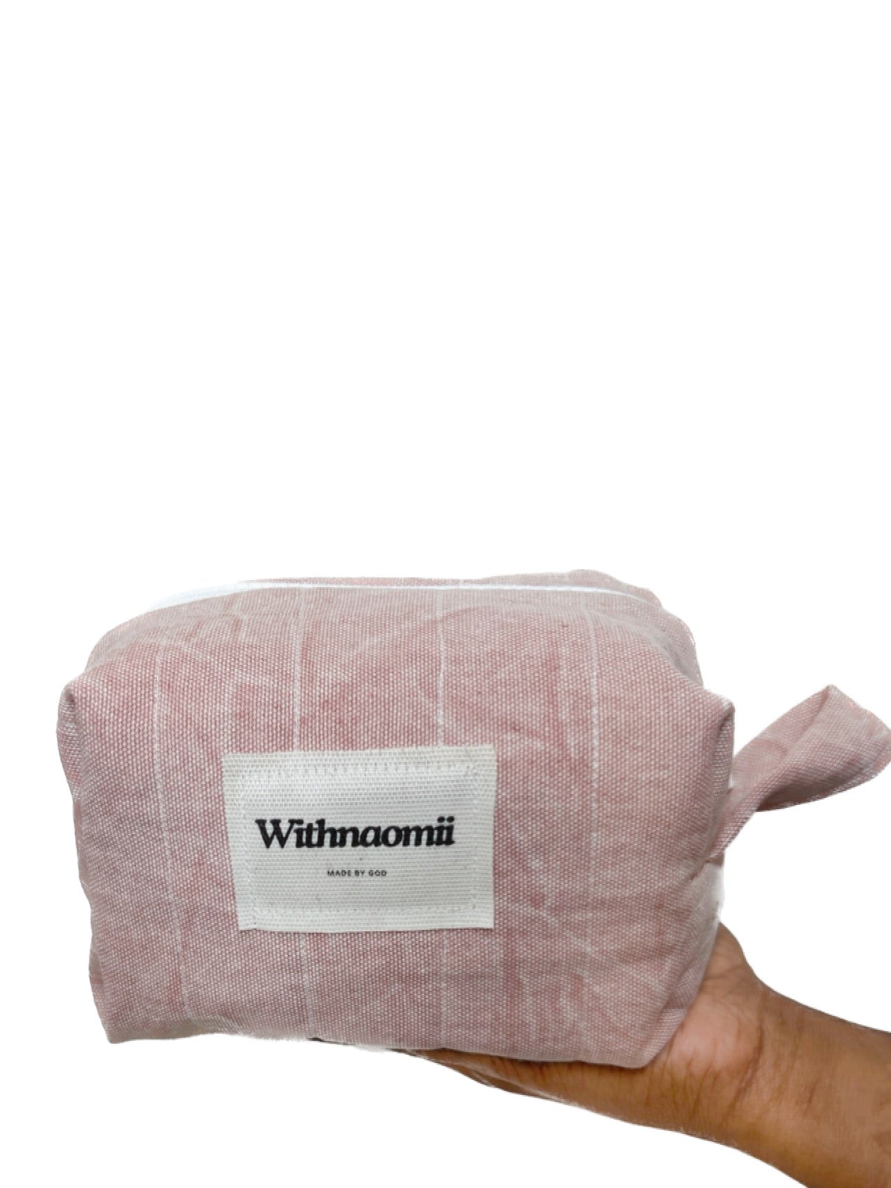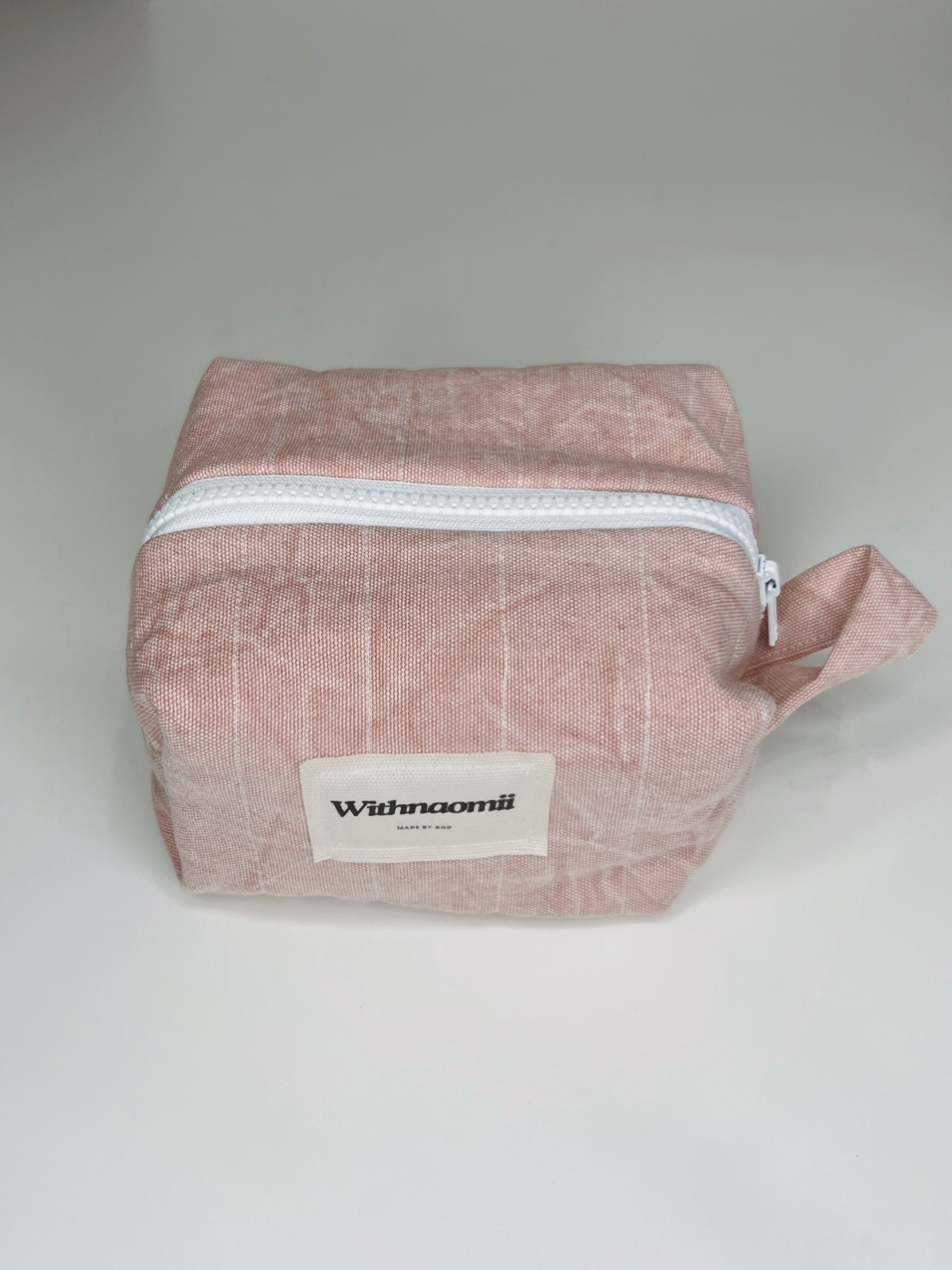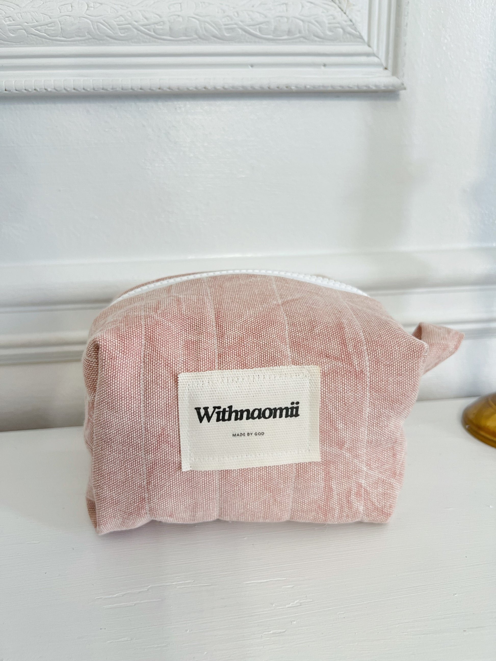 This small quilted bag is perfect for taking your beauty essentials on the go. It's ideal for storing skin care products, hair care products, accessories, cosmetics, or any other small items you need. Made from organic materials.