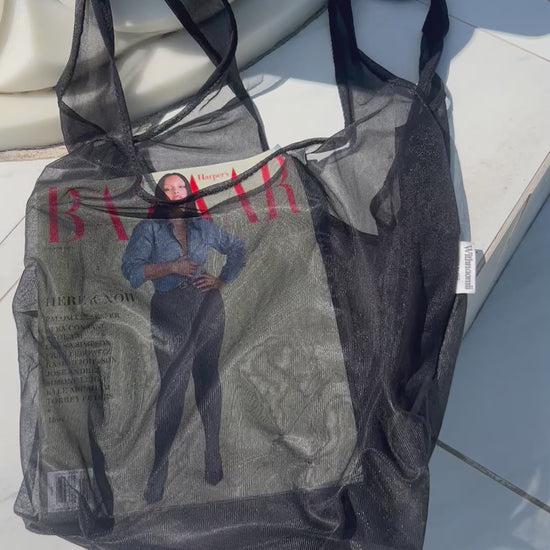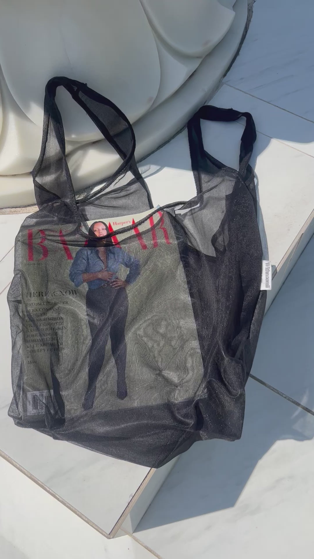 This versatile T-shirt shopping bag functions as a sheer mesh tote bag that is perfect for multiple uses, such as grocery shopping, gift packaging, or as a vacation tote bag. Its transparent design adds a creative touch and can even be used as a bridesmaid gift packaging.