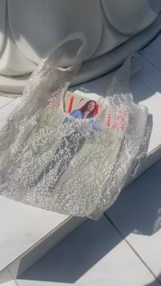This versatile T-shirt shopping bag functions as a sheer mesh tote bag that is perfect for multiple uses, such as grocery shopping, gift packaging, or as a vacation tote bag. Its transparent design adds a creative touch and can even be used as a bridesmaid gift packaging.