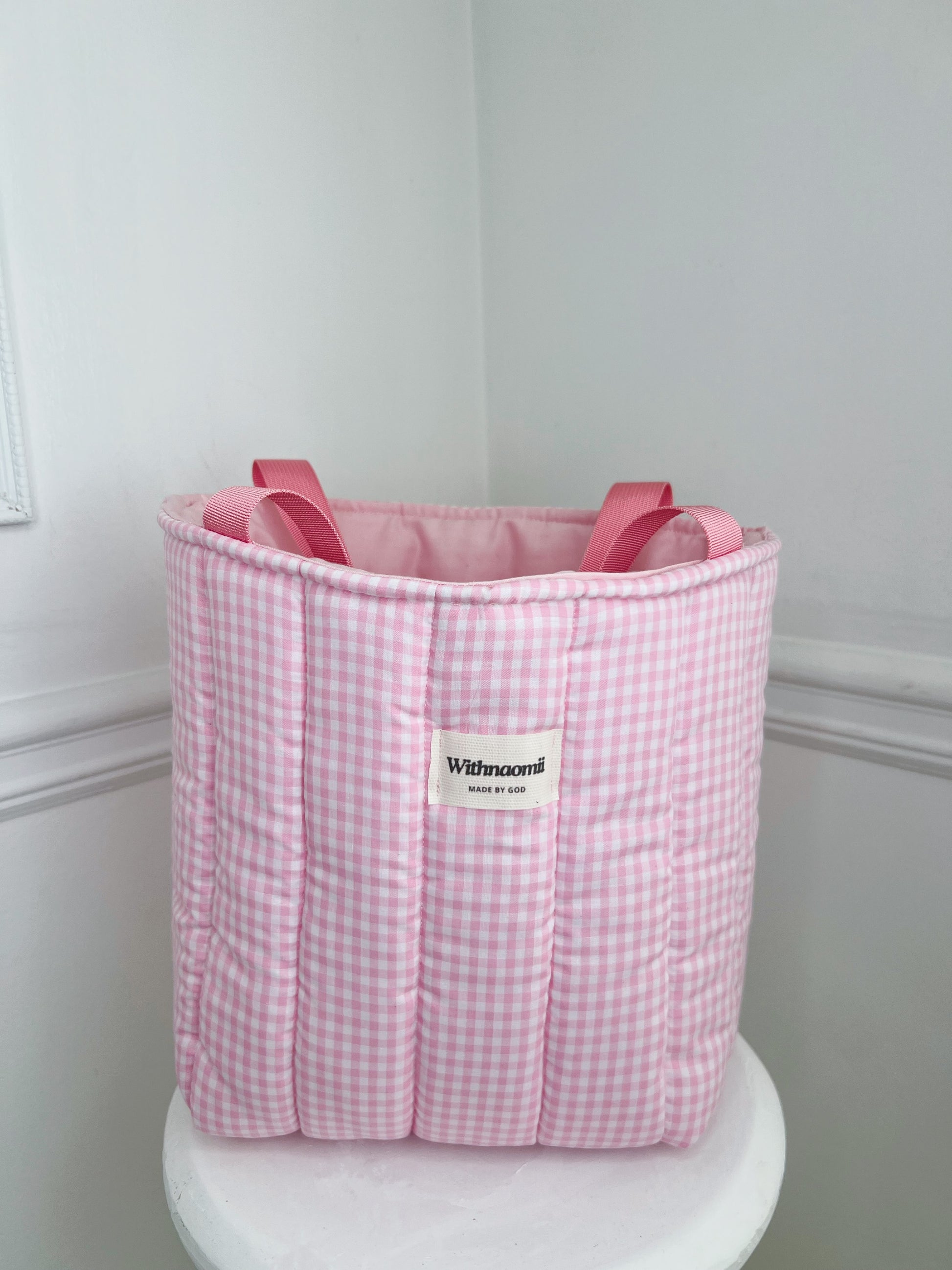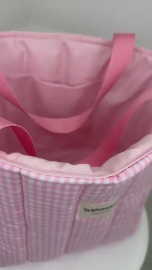 Experience the perfect combination of style and convenience with our Classic Bag Featuring a quilted exterior, pocket with a gingham pattern, this bag is perfect for carrying books, groceries, or beach gear, it's a versatile must-have for any occasion.